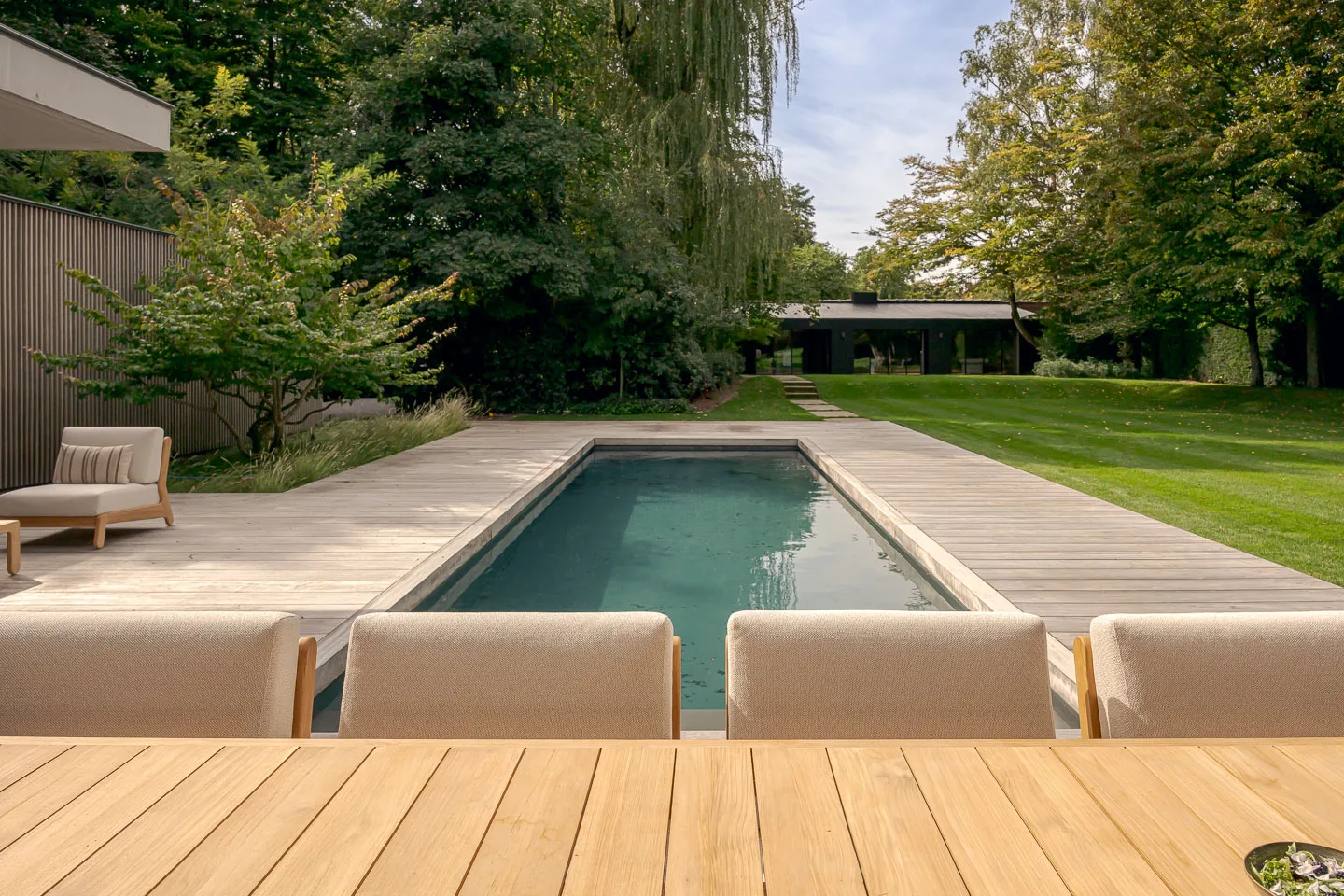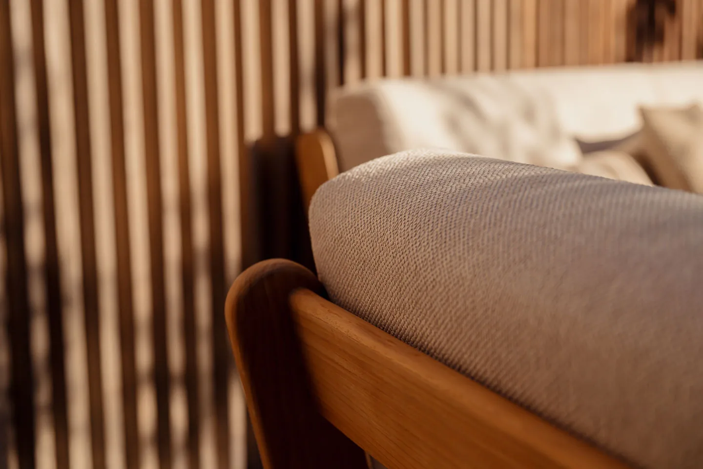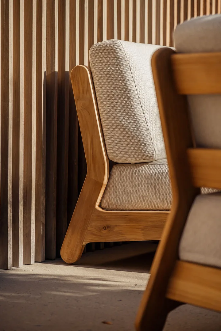 Fauteuil GRACE – Teck coussin avorio écru + housse