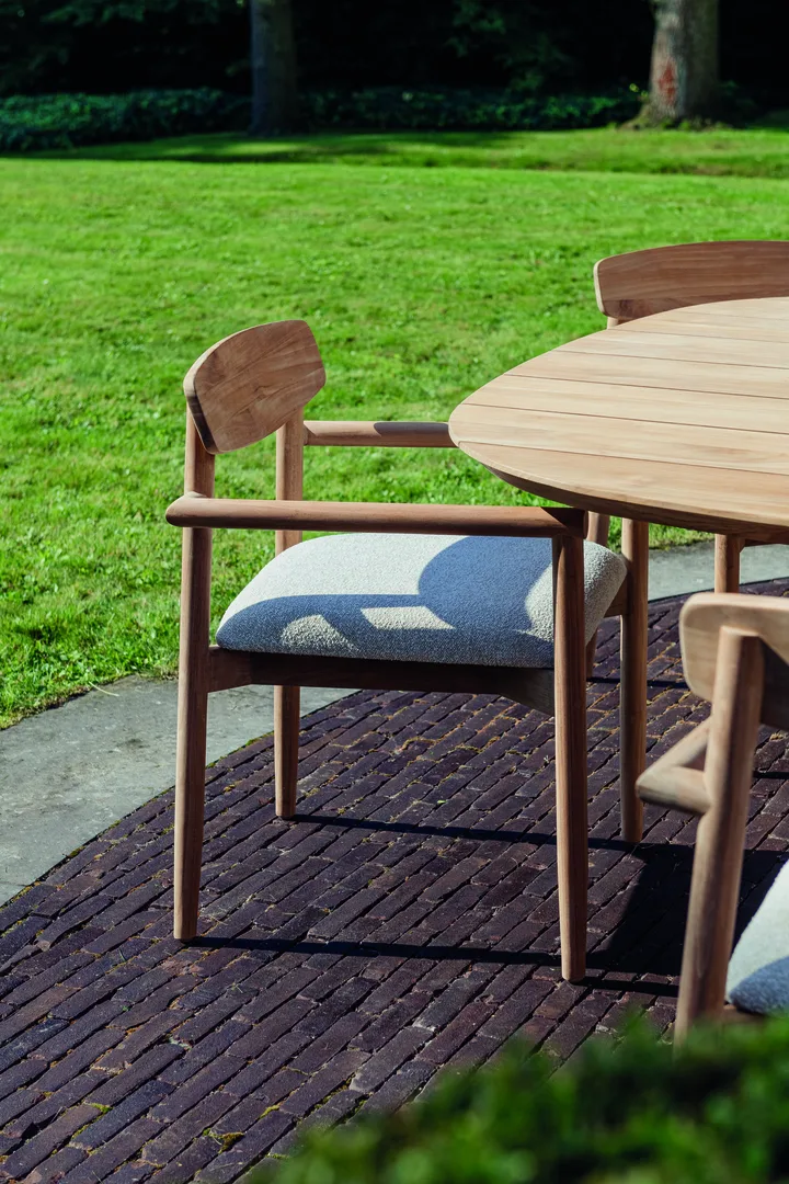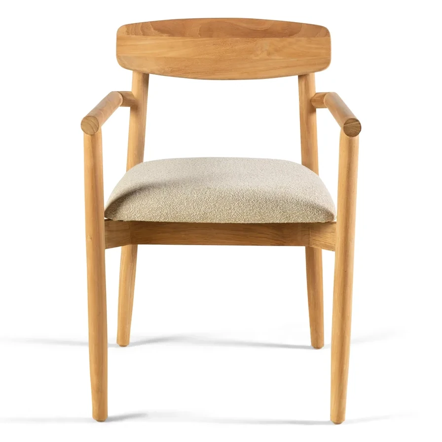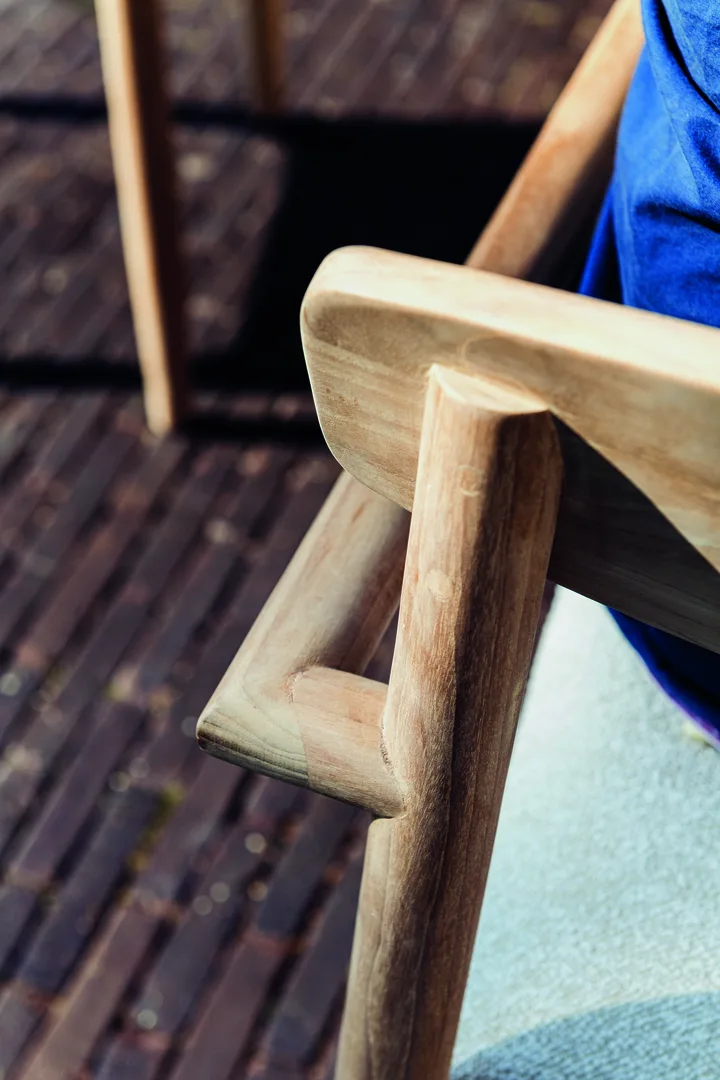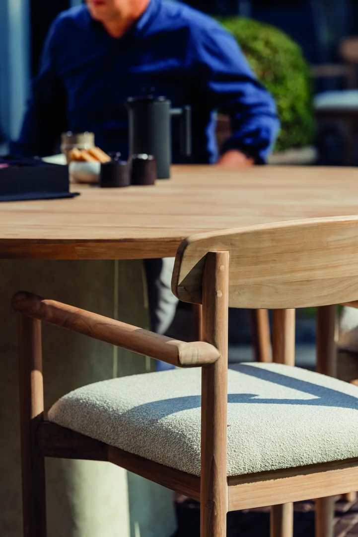 Fauteuil LEANDRO – Teck coussin fixe toutes saisons écru