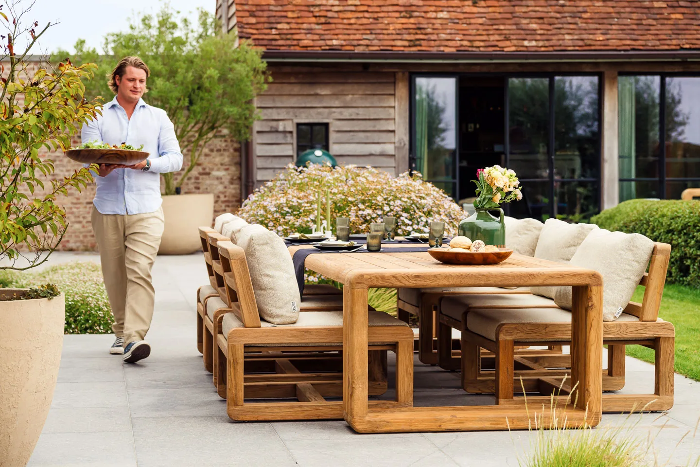 Il s’intègre parfaitement dans un salon de jardin haut de gamme ou un espace détente extérieur.