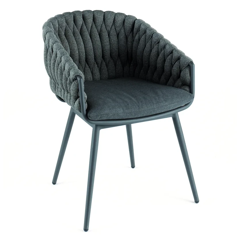 Variante 1 : Aluminium charcoal, chaussette oléfine grise foncée, coussin Sunbrella mousse séchage rapide grise foncée.