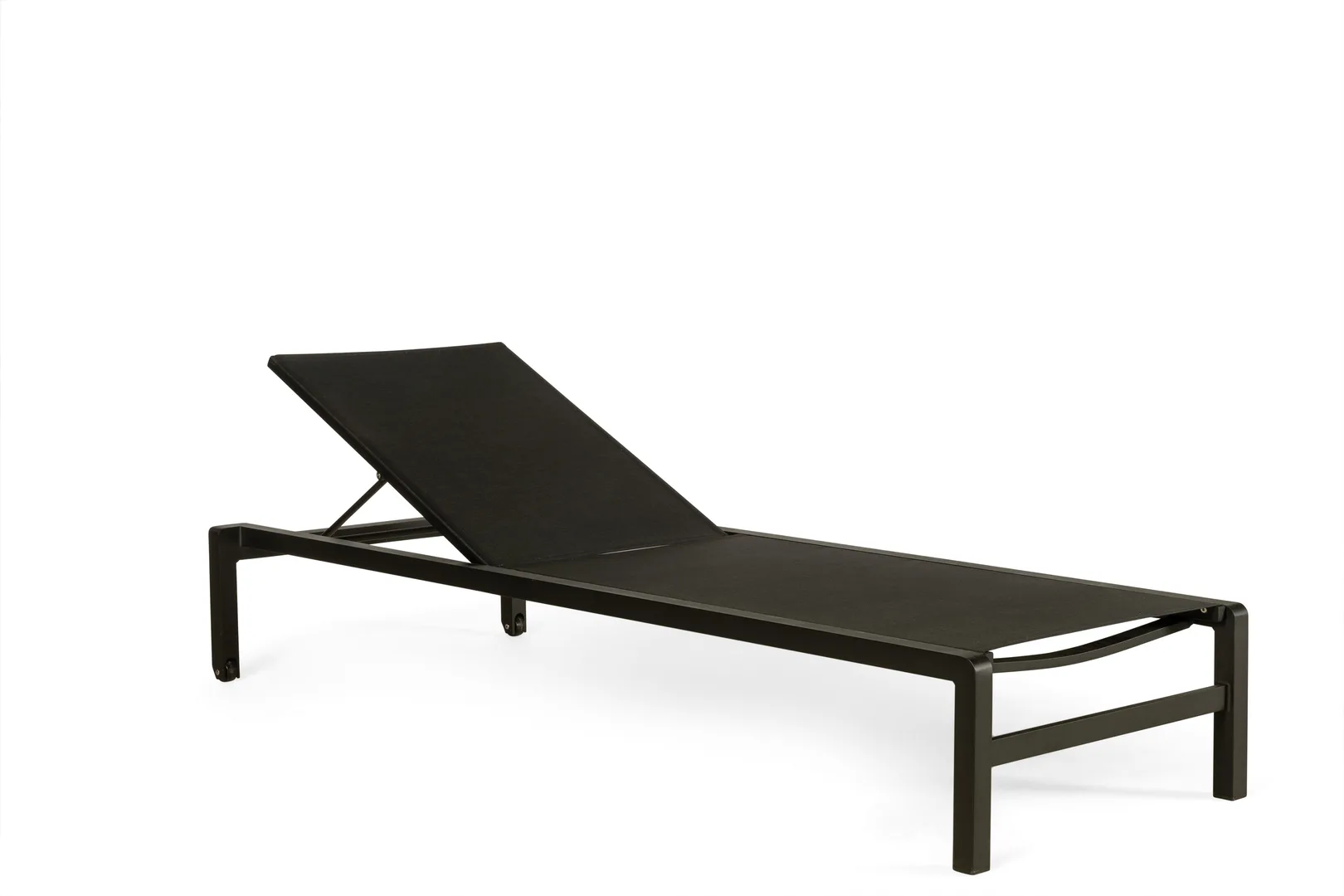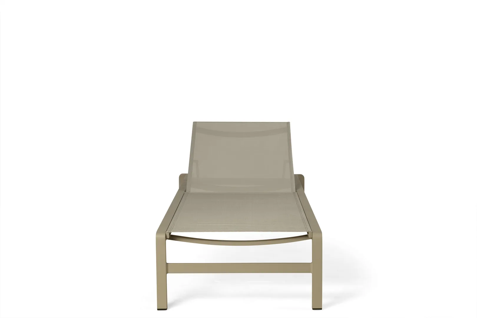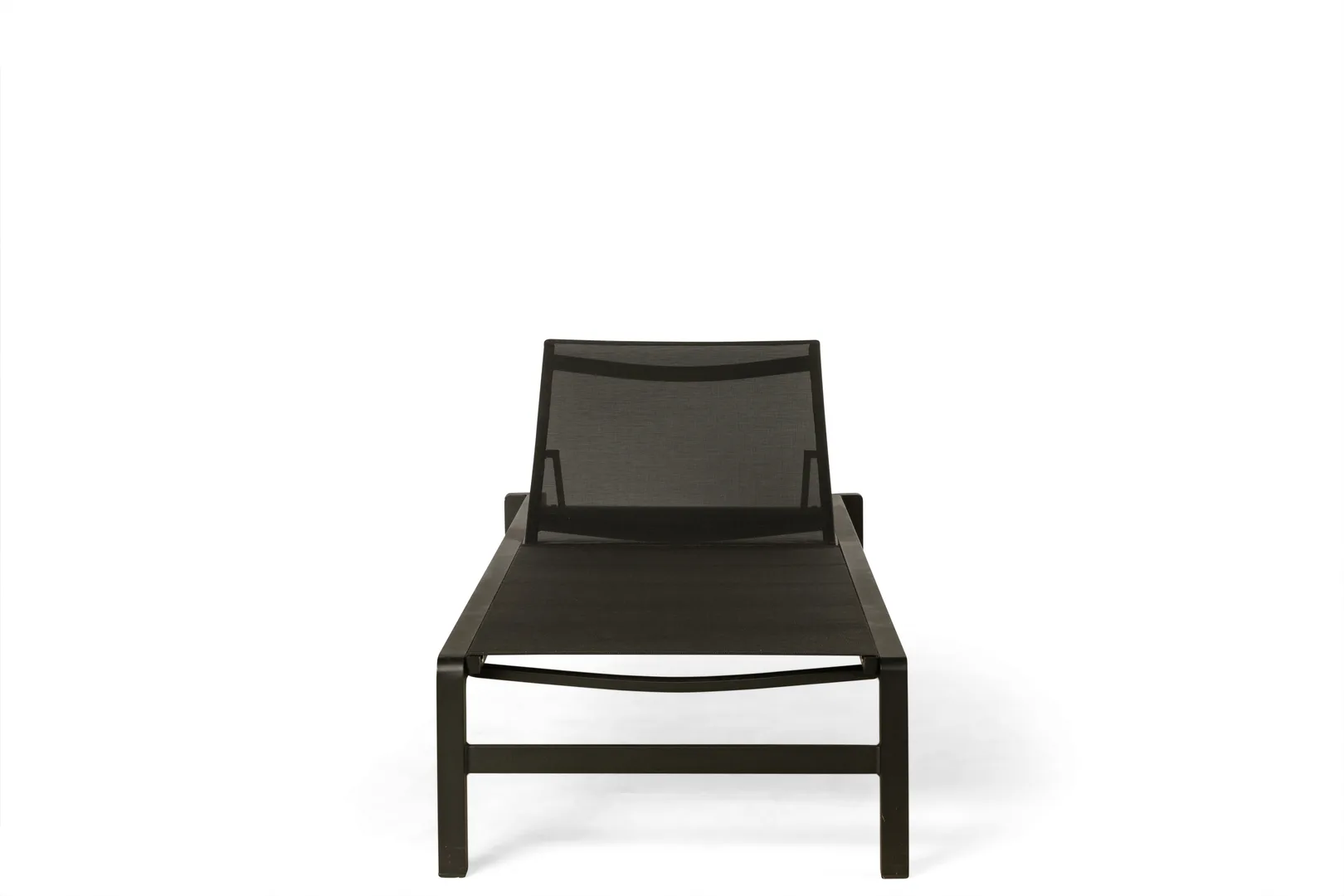 Structure aluminium. Textilène. Disponible en charcoal/gris argent, blanc/gris clair, noir/noir, lin/sable.