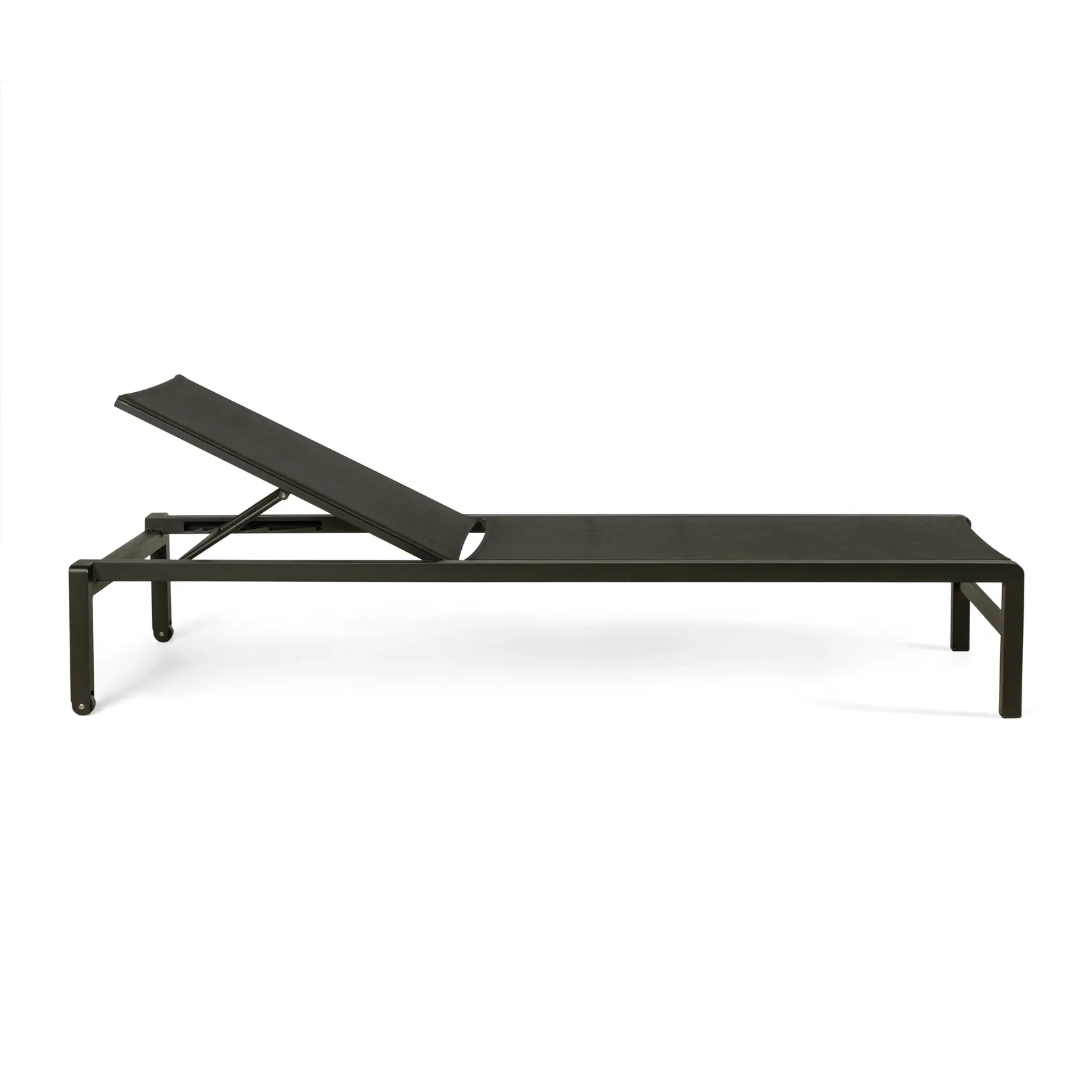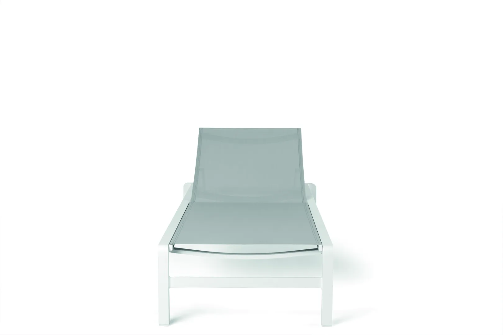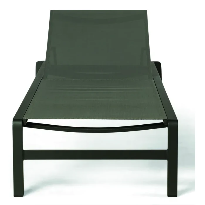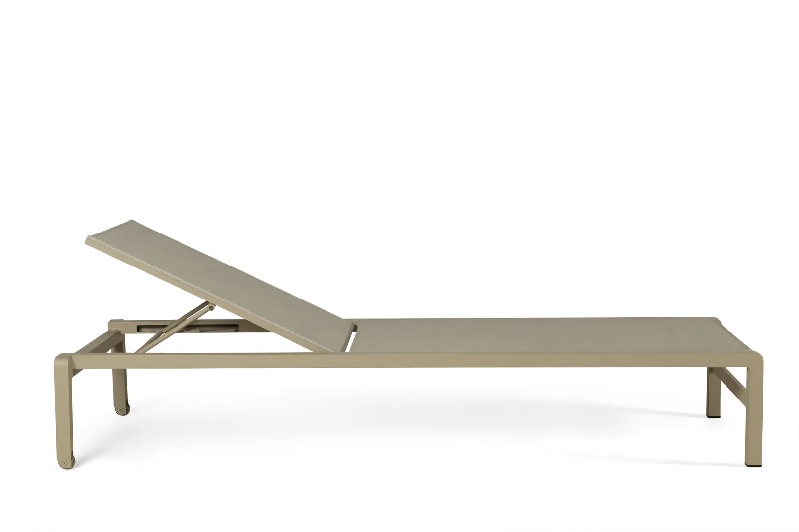 Structure aluminium. Textilène. Disponible en charcoal/gris argent, blanc/gris clair, noir/noir, lin/sable.