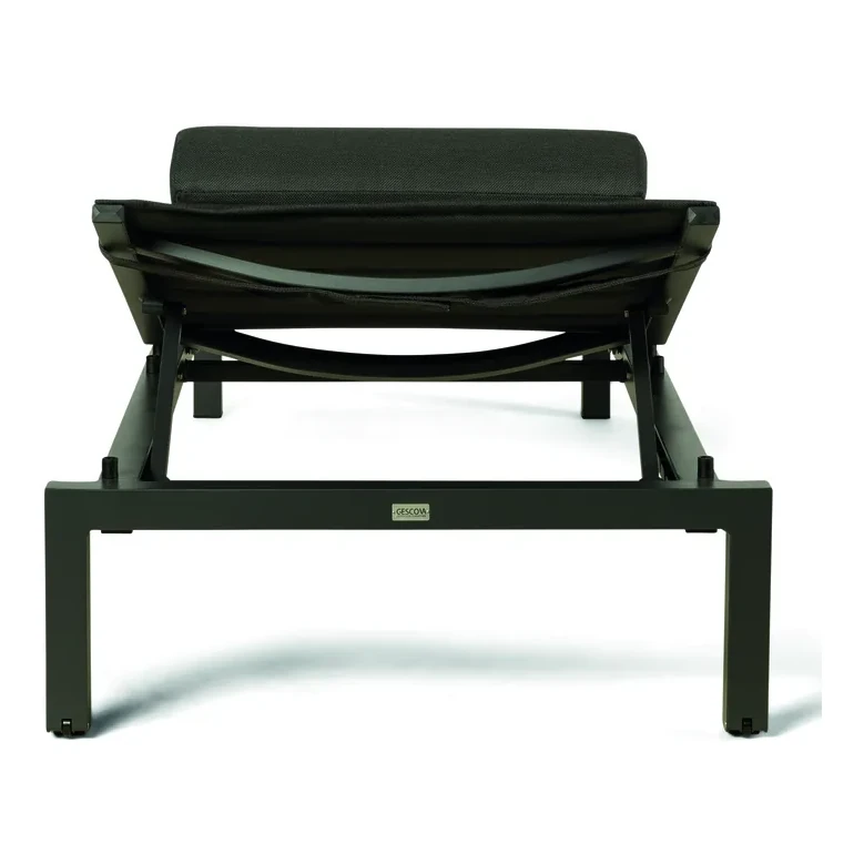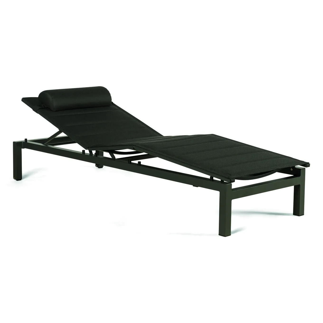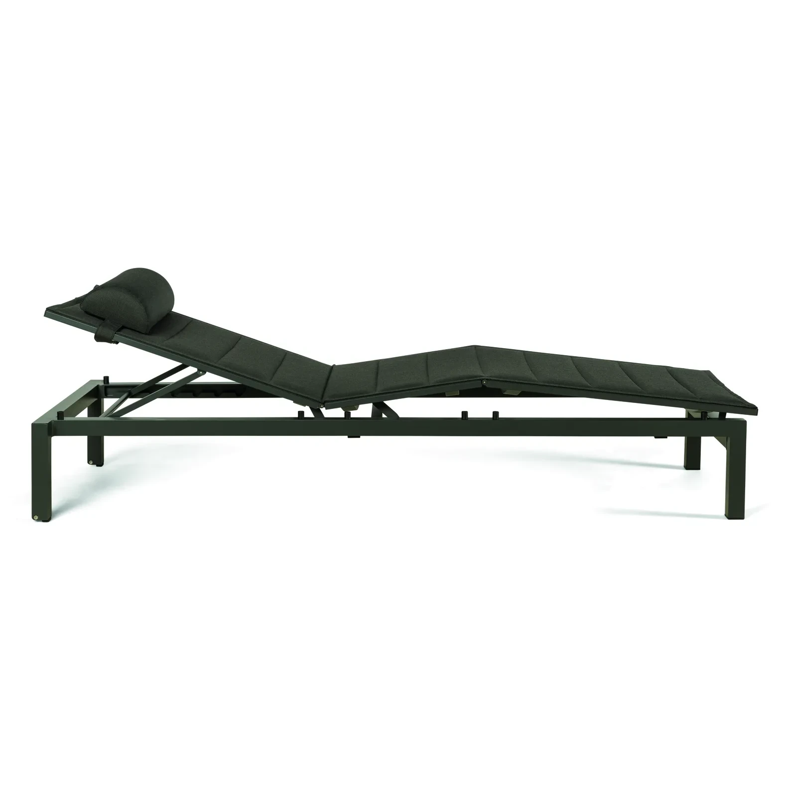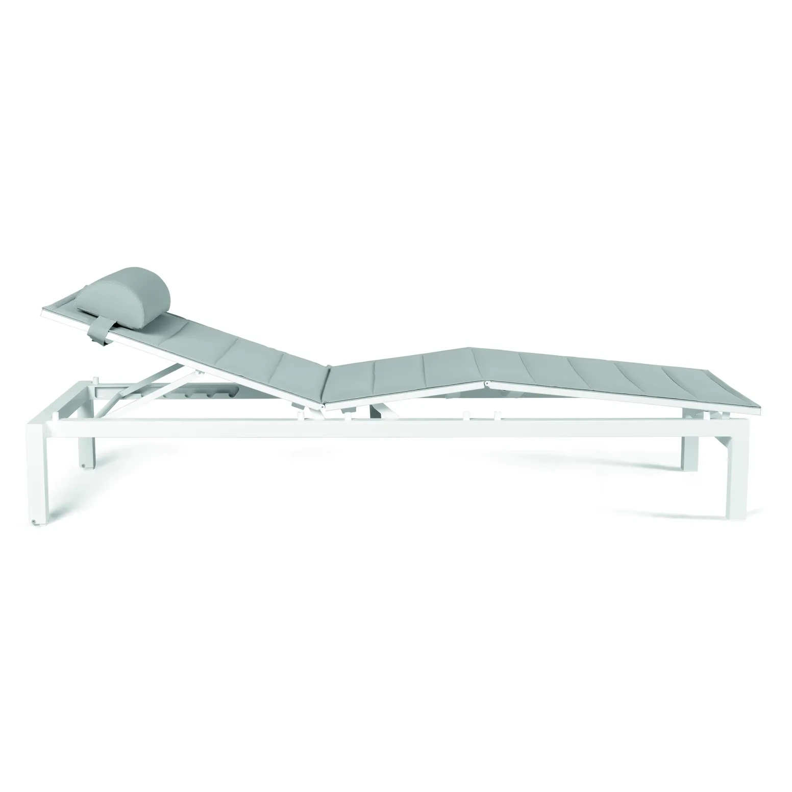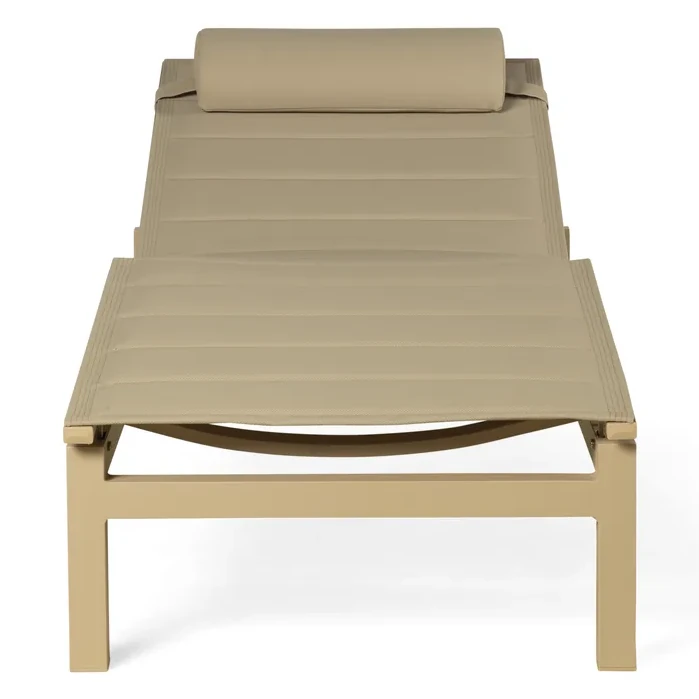 Structure aluminium. Textilène rembourré. Disponible en charcoal/gris foncé, blanc/gris clair, sable/beige.