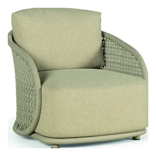 Le salon de jardin AMORA est un mobilier extérieur élégant associant aluminium, corde tressée et plateau céramique pour créer un espace lounge confortable et moderne sur votre terrasse.