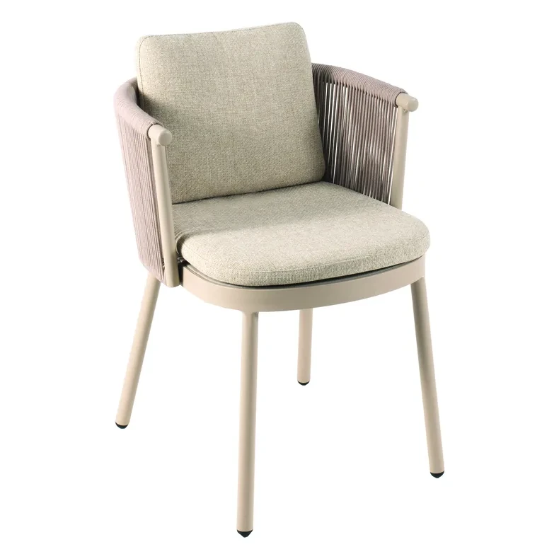 Structure aluminium sable, corde beige, coussin oléfine woolacombe beige. Largeur : 59 cm – Profondeur : 55 cm – Hauteur : 72 cm – Hauteur d’assise : 44 cm.