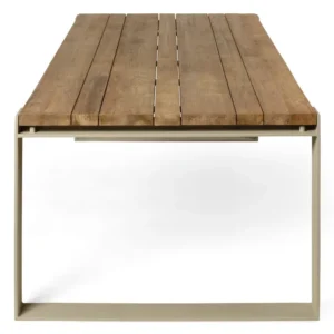 Structure et plateau en teck. Réf. 97452 : 90×210 cm, hauteur 75 cm. Réf. 97453 : 105×290 cm, hauteur 75 cm.